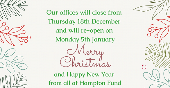 Please note that our office will close for the Christmas period from Thursday 18th December. We will re-open on Monday 5 January 2025. Warmest wishes to all from the staff and Trustees at Hampton…